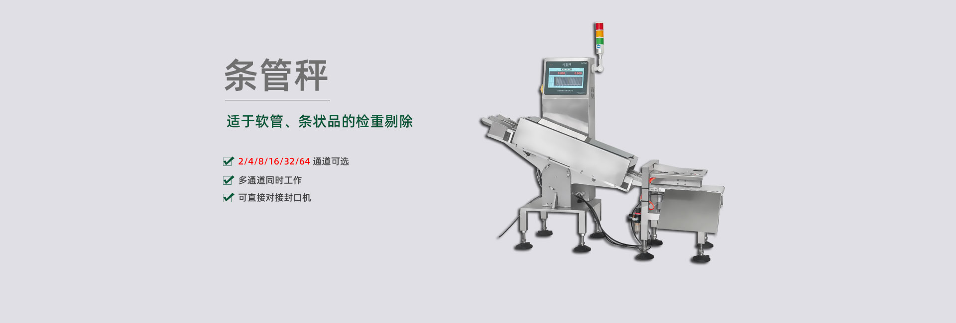 擁有各種剔除方案的專利,包括多列稱重結(jié)構(gòu)的剔除裝置,可杜絕不合格品誤通過,準(zhǔn)確剔除各種高速、超薄、片狀、易碎,軟包、空包等物品,包括多列高速產(chǎn)品。